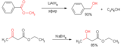 Кроме альдегидов и кетонов, восстановлению до спиртов поддаются также производные карбоновых кислот – хлорангидриды и сложные эфиры.