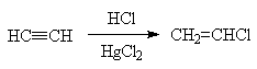 Хлороводород легко присоединяется к алкинам только в присутствии катализаторов. Так, винилхлорид получают действием HCl на ацетилен в присутствии хлорида ртути (II).