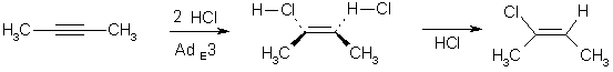 Для описания реакций электрофильного присоединения к алкинам применяют два механизма – би- и тримолекулярный (AdE2 и AdE3).