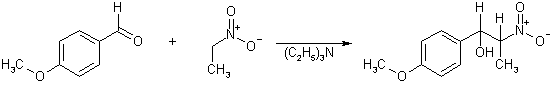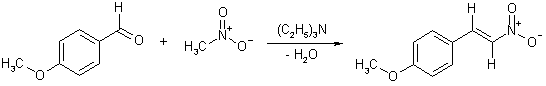 Взаимодействие нитроалканов с менее активными электрофилами, такими как ароматические альдегиды, проводят в присутствии слабых оснований. При использовании триэтиламина создается достаточно высокая концентрация аниона и реакция идет почти мгновенно. В случае, когда в реакцию вовлекают первичный нитроалкан, практически всегда происходит отщепление молекулы воды от промежуточно возникающей молекулы нитроспирта и образуется более стабильное сопряженное непредельное нитросоединение.