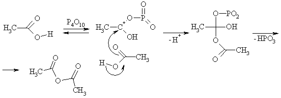 Однако нужно иметь в виду, что атомы кислорода в этих реакциях меняются местами, т.е. фактически замещается не гидроксильный, а карбонильный, т.к. именно к нему присоединяется кислота Льюиса на первой стадии. Аналогично, превращение кислот в ангидриды при действии пентаоксидом фосфора идет через стадию замещены карбонила на хорошую уходящую группу.